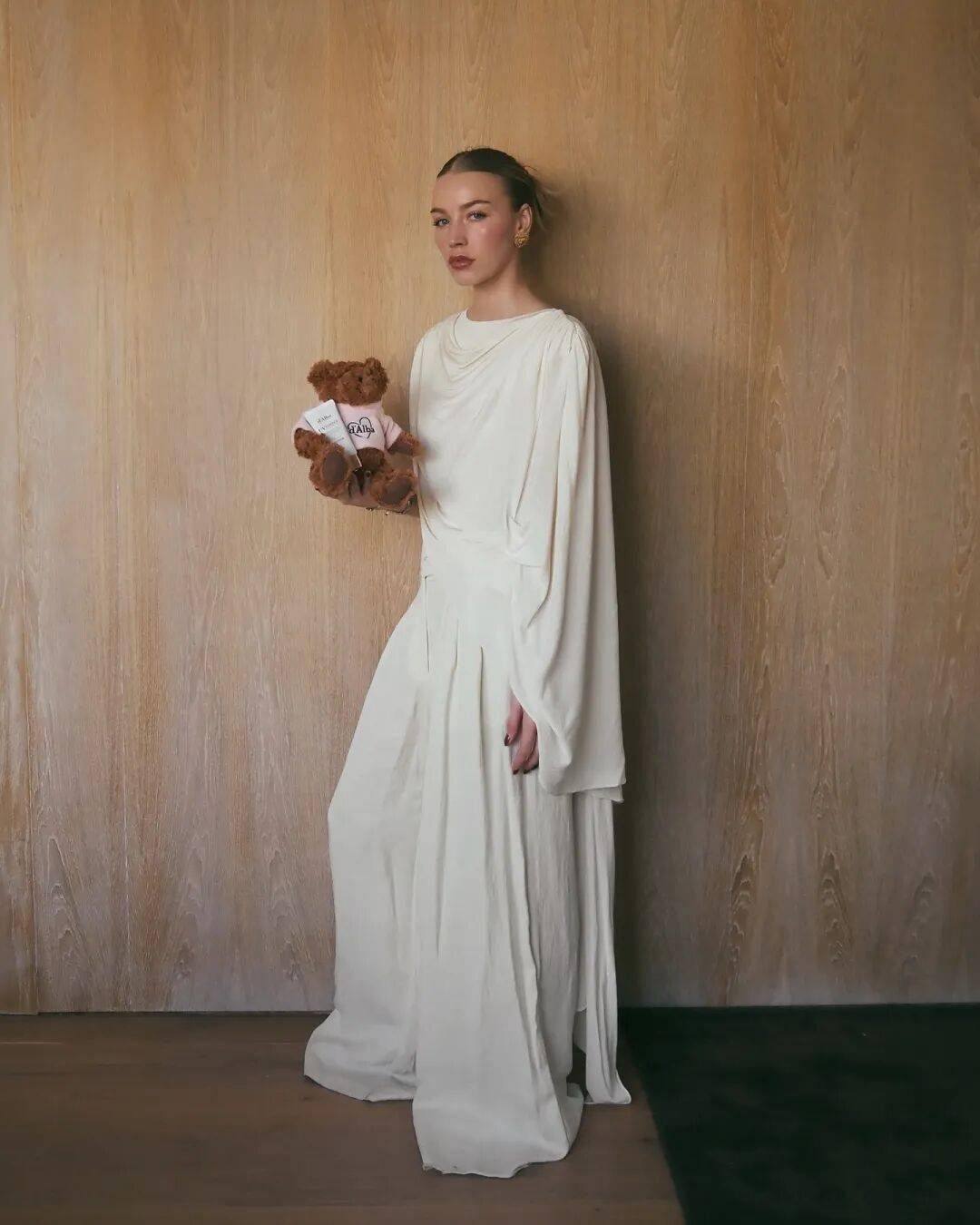 一直被视作审美标杆的 Elsa Hosk,即便早已拥有颜值与财富,仍在穿搭中不断精进,从撞色玩味到 effortless chic,再至如今充满灵气的女神风造型,可谓推动了艺术系贵妇风的普及。她的着装尤其强调轻盈流动感,善用水袖、披风、大裙摆等元素,让雕塑感轮廓从夏日延续至冬日,毫无臃肿之感。