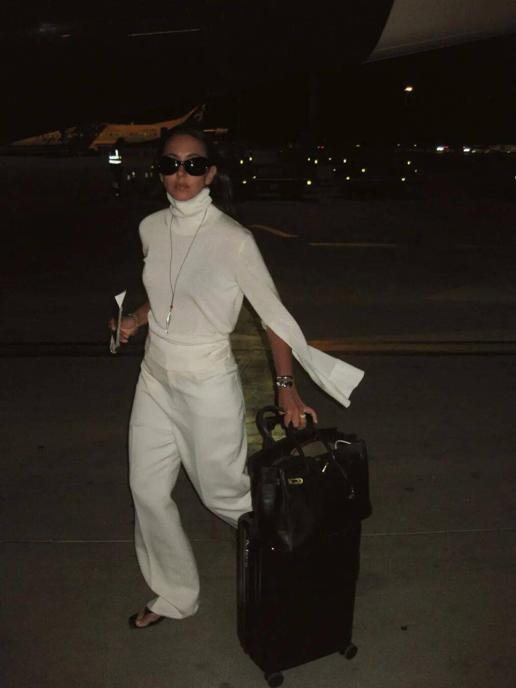对她们而言,服装不仅是日常穿着,更是一种氛围营造与生活态度的表达——体面、舒展,且富有灵气。例如近日携家度假的 Rosie Huntington-Whiteley,便一改往日强势印象,以神秘柔美的造型示人,令人在屏幕这端也能感受到温柔与神织的女性魅力。