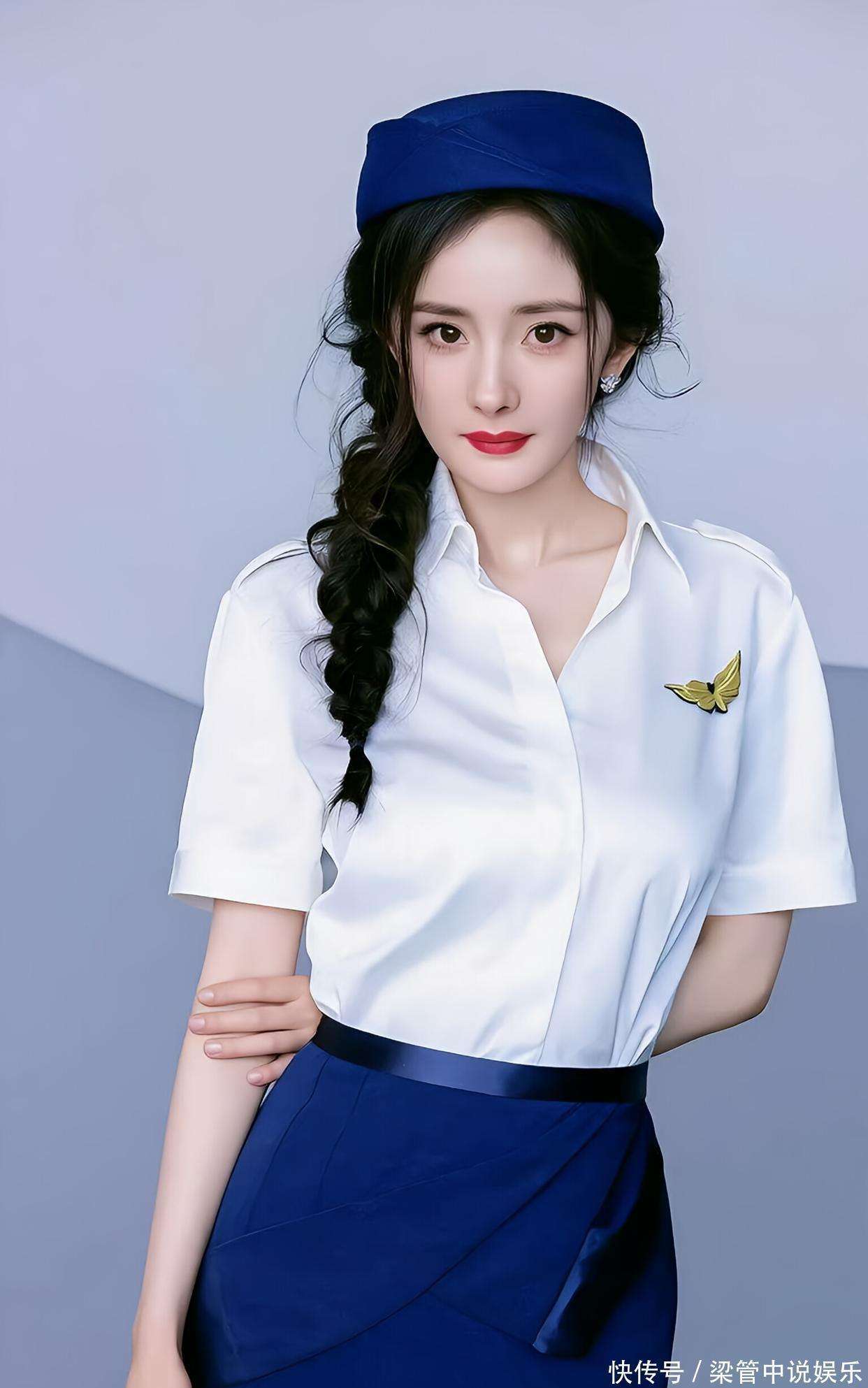 她的姿态从容且自信,双臂自然交叉于胸前,眼神坚定而温柔,整个人仿佛化身为一位既专业又迷人的空中乘务员。那枚金色的徽章,巧妙地点缀在帽子上,既呼应了职业的元素,又提升了整套造型的质感。领巾的蓝白相间,不仅为整体增添了一抹活泼气息,也恰如其分地打破了传统制服所带来的严肃感,使得这套造型多了一分灵动与自由。这种Uniform Chic风格,正是一种将职业装转化为个人时尚符号的高级玩法,它不是盲目追随潮流,而是通过精准的剪裁与巧妙的配色,打造出独属于个人的独特风格。